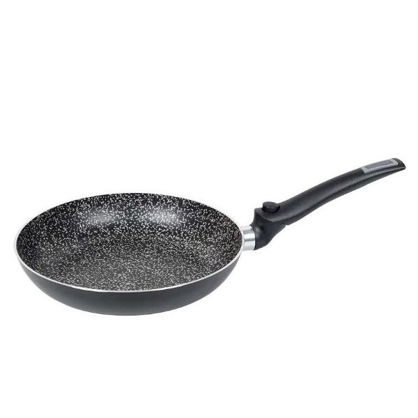 Een stevige aluminium koekenpan met wegklapbare handgreep. Voorzien van een 5 laags Salus Stone® coating en een anti-slip onderkant. Deze pan beschikt over een wegklapbare handgreep en is daardoor ruimtebesparend en makkelijk mee te nemen. Vaatwasmachinebestendig en geschikt voor de warmtebronnen gas, keramisch en elektrisch. Dikte: 2,5 millimeter.