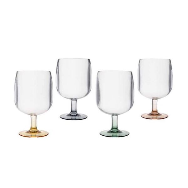 Een set van 4 kleurrijke stapelbare wijnglazen uit de Pastel collectie. Gemaakt van sterk kunststof, vrijwel onbreekbaar en lichtgewicht. De glazen zijn BPA vrij. De glazen zijn leuk te combineren met andere items uit de Pastel collectie.