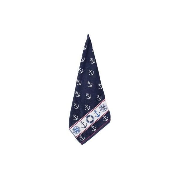 Bunzlau Castle keuken handdoek Maritiem in de kleur donkerblauw met een nautisch decor van ankers en reddingsboeien. De theedoek is gemaakt van 100% hoogwaardig katoen. Een bijpassende keuken theedoek is ook verkrijgbaar.