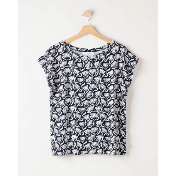 Korte top met kapmouwen en een iets wijdere hals. Een populaire pasvorm van een top in onze soepele viscosemix