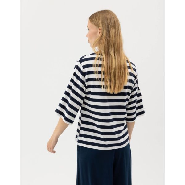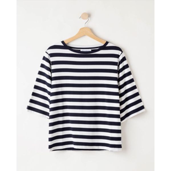 Korte top met driekwart mouwen en een iets wijdere hals. Een populaire pasvorm van een top in onze soepele viscosemix