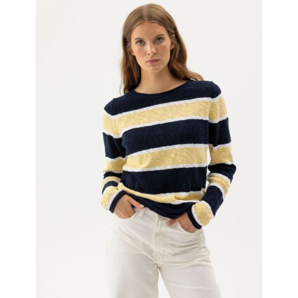 Deze mooie trui met lange mouwen heeft een ruwere katoen structuur ook wel ’slub cotton’ genoemd.