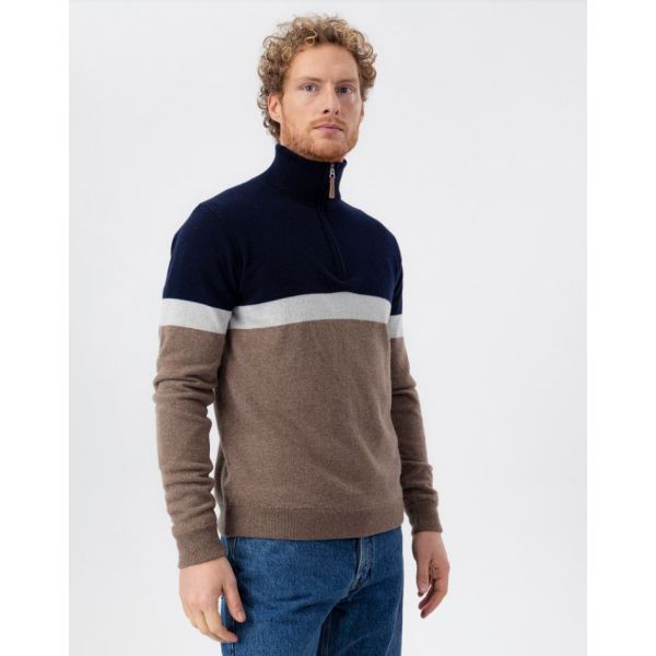 Windstopper Stellan van Holebrook is een fijn gebreide trui die zorgt voor een stoere en sportieve look. Dankzij de elastische winddichte voering blijf je aangenaam warm. Heeft een hoge kraag die geribbeld is gebreid net als de manchetten. Kraag heeft aan binnenkant contrasterend blauw. Gemaakt van 100% merinowol.