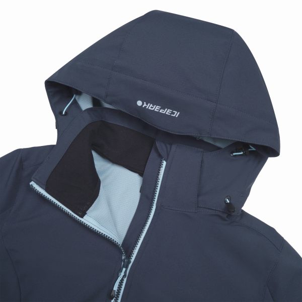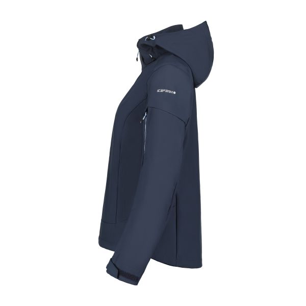 Icepeak softshell jas voor dames, die perfect is voor actieve bezigheden. De jas is voorzien van thermostrech materiaal en is gemaakt van ademend, sneldrogend materiaal. De capuchon is verstelbaar. De zakken zijn voorzien van ritsen.