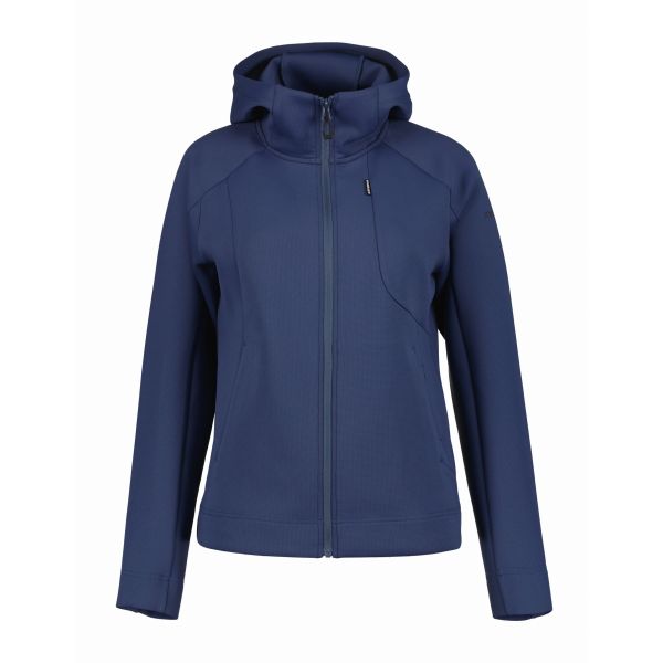 Icepeak midlayer voor dames. Normale pasvorm. Vaste capuchon. Twee zakken met rits aan de voorkant. Insteekzak. De stof laat vocht snel verdampen, zodat u altijd droog en comfortabel blijft. Het 4-way stretchmateriaal rekt in alle richtingen en biedt maximale bewegingsvrijheid.