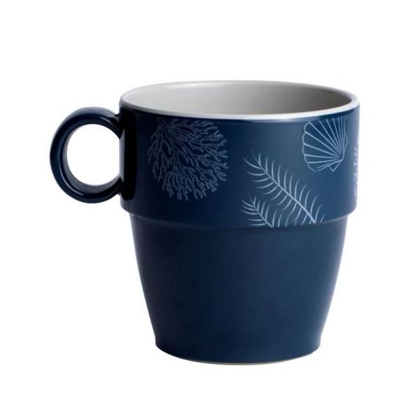 Marine Business Living onbreekbare mok. Deze stevige en stapelbare Living melamine mok gebruik je voor het genieten van een goede kop koffie of lekkere cappucino maar ook voor een fris glas melk. Het koraalmotief in marineblauw en beige is stijlvol en perfect voor alle gelegenheden. Deze grote onbreekbare beker is gemaakt van hoogwaardig melamine en past bij alle andere melamine accessoires uit de Living bootservies collectie.