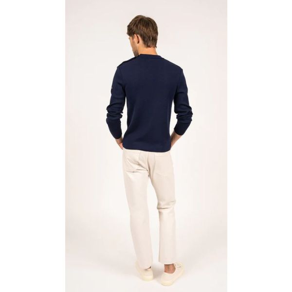 Geïnspireerd door onze traditionele marinetruien, is de Estran-trui een fijner model gemaakt van dezelfde wol als onze Marée-truien. Zachtere wol met een fijnere dikte, biedt een comfortabele pasvorm en zit iets dichter bij het lichaam dan onze iconische Matelot. Een ideaal stuk voor wie op zoek is naar een aangename trui met behoud van zijn maritieme DNA.