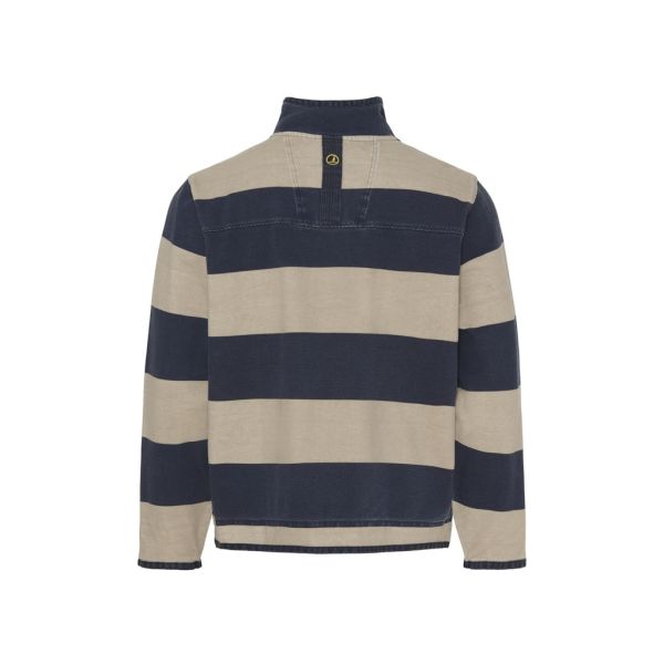 Sweatshirt met halve rits van zwaar drievoudig piqué met bedrukte streep. Splitten in zijnaad. Style heeft een speciale wassing om het een used look te geven. Kleuren kunnen vervagen bij het wassen en bij blootstelling aan zonlicht. 100% katoen.