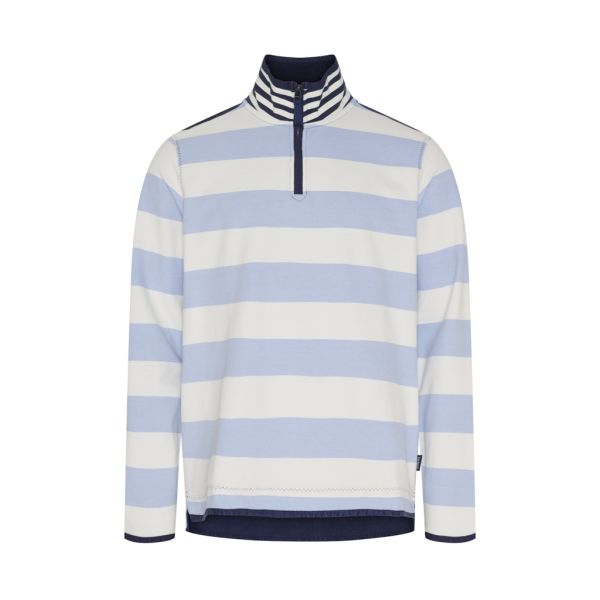 Sweatshirt met halve rits van zwaar drievoudig piqué met bedrukte streep. Splitten in zijnaad.